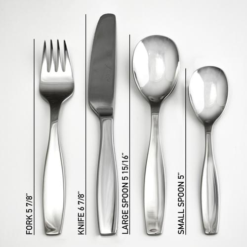 Designed to grow with your child from toddler to school age, the set includes a fork, knife, large spoon and small spoon for everyday use. Smooth, easy-to-hold handles make mealtimes enjoyable, while the modern classic design blends seamlessly with any table setting.