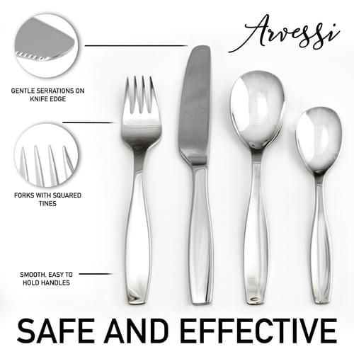 Engineered for safety and function, the fork features squared tines for easy food pickup and the knife has gentle serrations so children can safely learn proper skills. Dishwasher safe, rust-resistant and built to last, Arvessi cutlery is backed by a lifetime guarantee against manufacturing defects.
